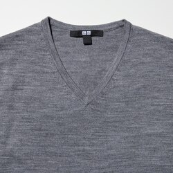 Водолазка с V-образным вырезом из 100% мериносовой шерсти GREY | E478332-000/05