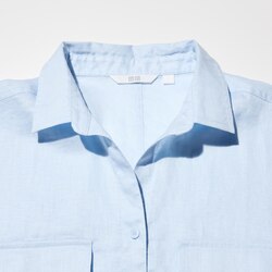 Рубашка с китайским воротником из 100% премиального льна (прямого кроя) LIGHT BLUE | E484256-000/60