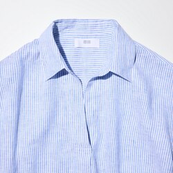 Рубашка с отложным воротником из 100% премиального льна (в полоску, 3/4 рукав) BLUE | E475650-000/63