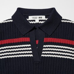 Пуловер-поло с коротким рукавом в полоску скиппер из хлопкового понтеля BLUE | E485644-000/64