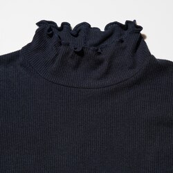 Футболка с высоким воротником из кашемира и шерсти HEATTECH EXTRA WARM (ребристая)